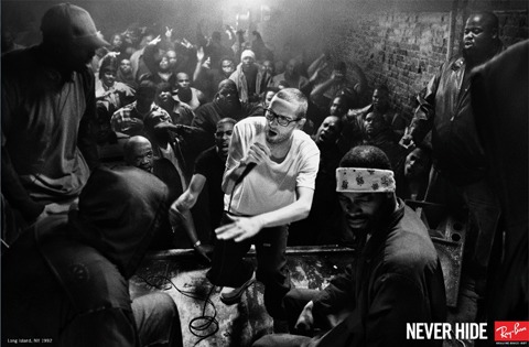 1990 - 2000s: "Geek" - RX5228. Ngay giữa bức ảnh là chàng trai da trắng mảnh khảnh đang cố hòa nhập vào nền văn hóa Hip-hop của người Mỹ gốc Phi. Hình ảnh này thể hiện sự hòa hợp giữa người Mỹ và người Mỹ gốc Phi, điều này không có tiền lệ trong lịch sử Mỹ. Vấn nạn phân biệt chủng tộc luôn diễn ra trong lòng nước Mỹ. Đó chính là tinh thần "Never Hide" dám thể hiện khát vọng của bản thân. RX5228 đánh dấu bước ngoặt phát triển vượt bậc cả về chất lượng của gọng RayBan vào thị trường.