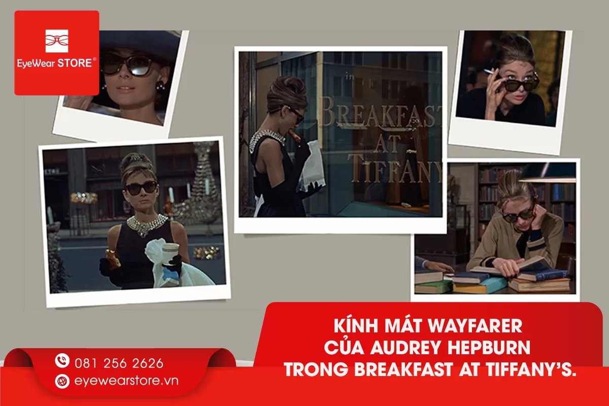 Kính Rayban Wayfarer của Audrey Hepburn trong bộ phim Breakfast at Tiffany's.