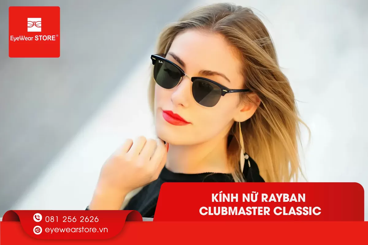- Bạn theo đuổi phong cách thanh lịch, thì nên ưu tiên các mắt kính rayban nữ màu sắc trung tính, thiết kế tinh tế như Clubmaster cổ điển, kính mắt mèo thanh mảnh hay dáng kính Aviator gọng vàng...