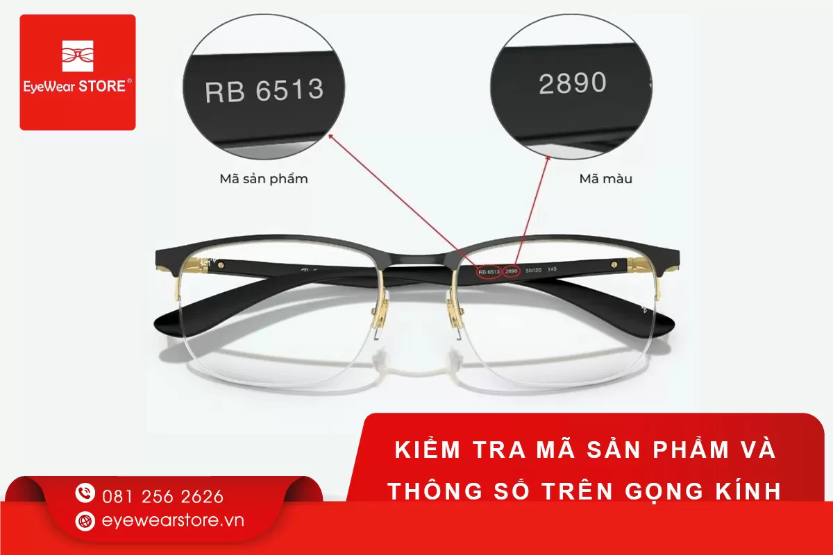 Soi mã sản phẩm và thông số trên gọng kính Rayban